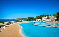 Strand: kavicsos, betonos, sziklás (kb. 50-100 m-re); napernyők és nyugágyak felár ellenében