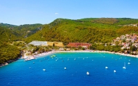 Strand: kavicsos, köves, sziklás; strand gyalogosan 5 percre; napernyők és nyugágyak felár ellenében